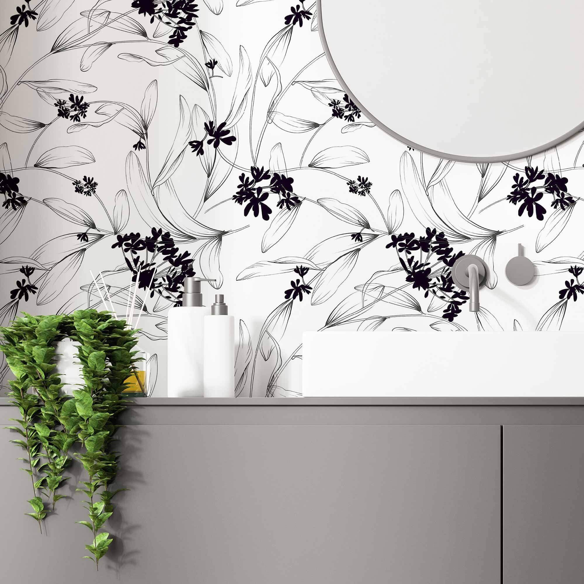 Black And White Floral Peel And Stick Wallpaper | Brengsek Wall