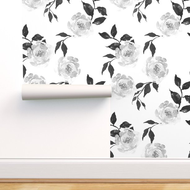 Peel-and-Stick Removable Wallpaper Black And White Large Scale Floral